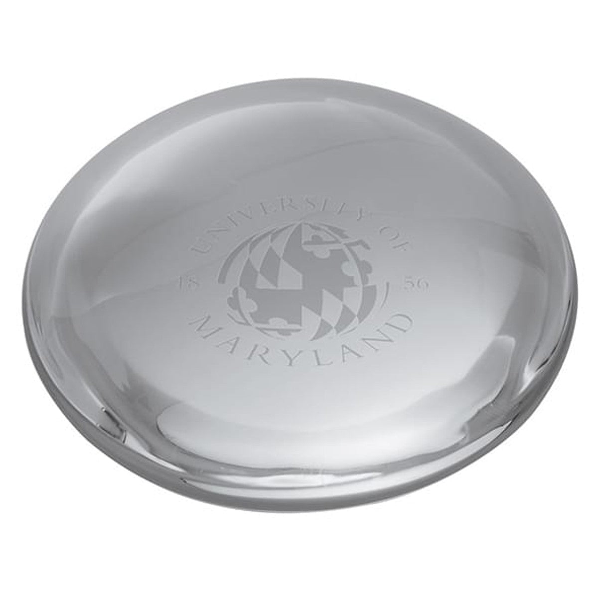 A proud display of Maryland pride for any office, the Maryland Logo is prominently etched on this hand-crafted glass paperweight.