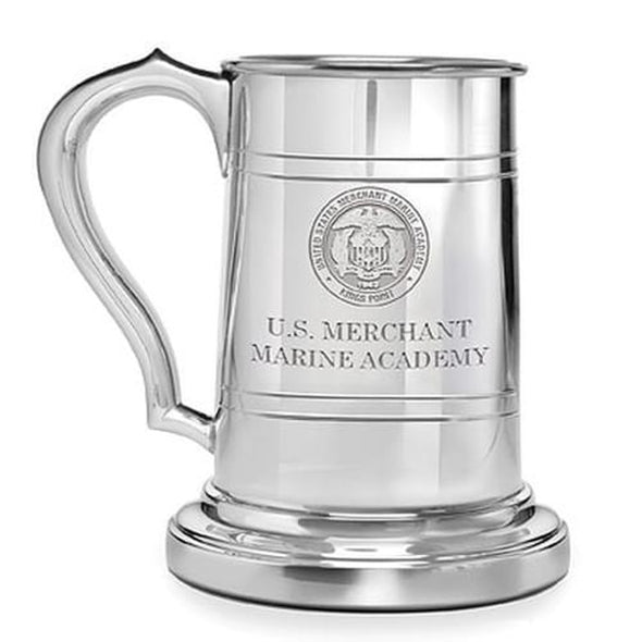 U.S. Merchant Marine Academy pewter stein, handsomely engraved with "U.S. Merchant Marine Academy" and seal, generously accommodates your custom-engraved personal message.