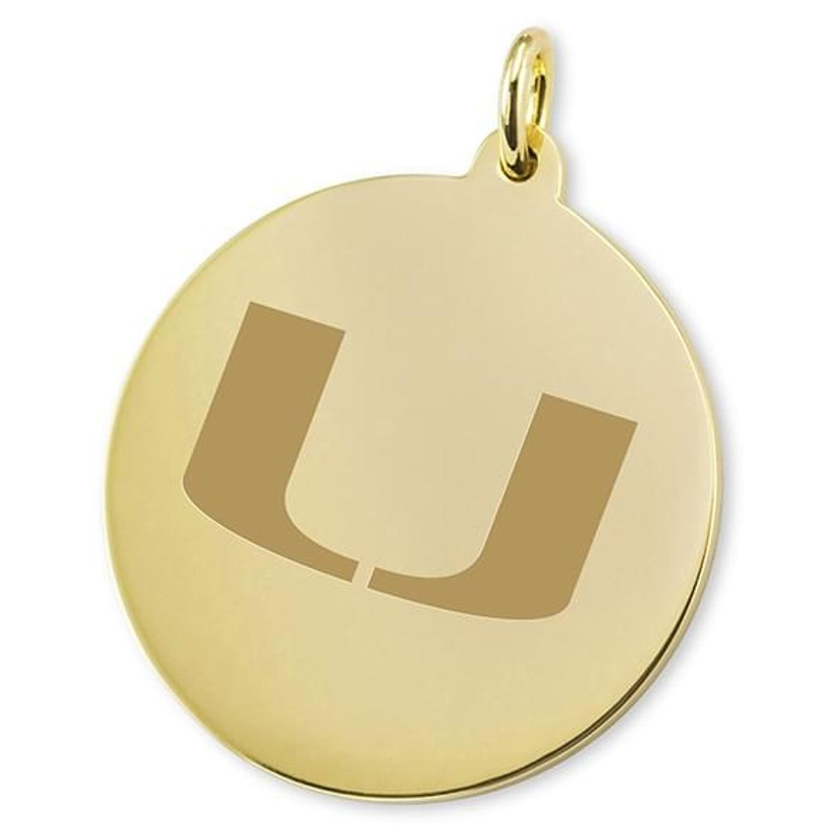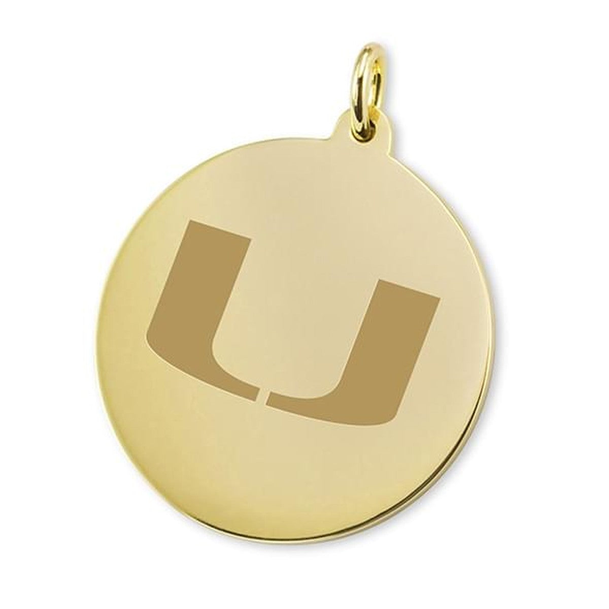 University of Miami 18-karat charm features Miami logo on front.