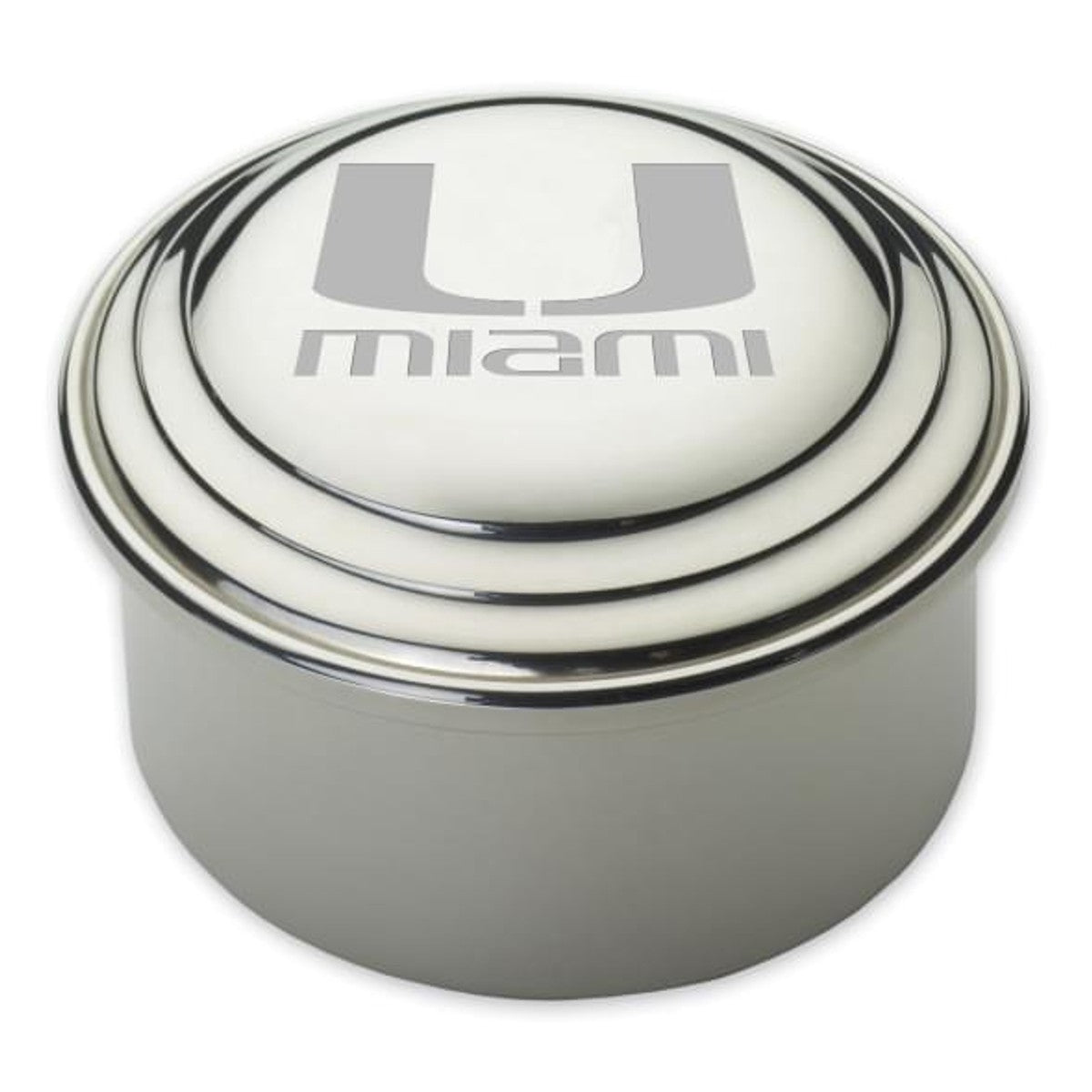 University of Miami pewter keepsake box is a beautiful space to store your treasures and features the Miami logo on its lid.