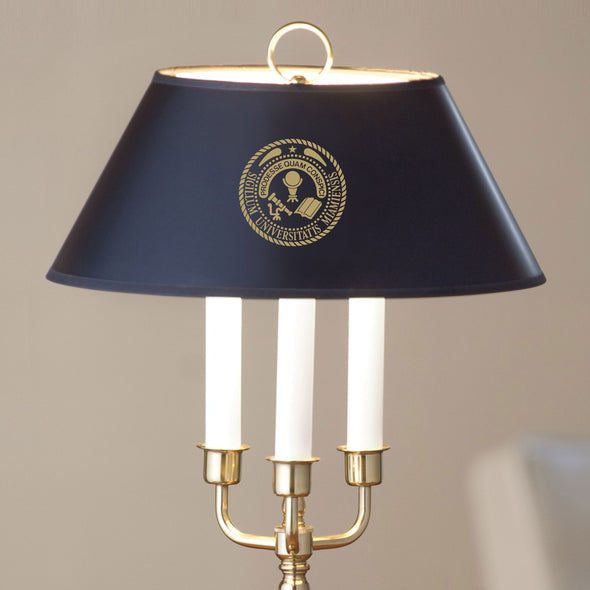 The Miami University Lamp in Brass & Marble measures 22" high. It also has a substantial presence, weighing 8 pounds.