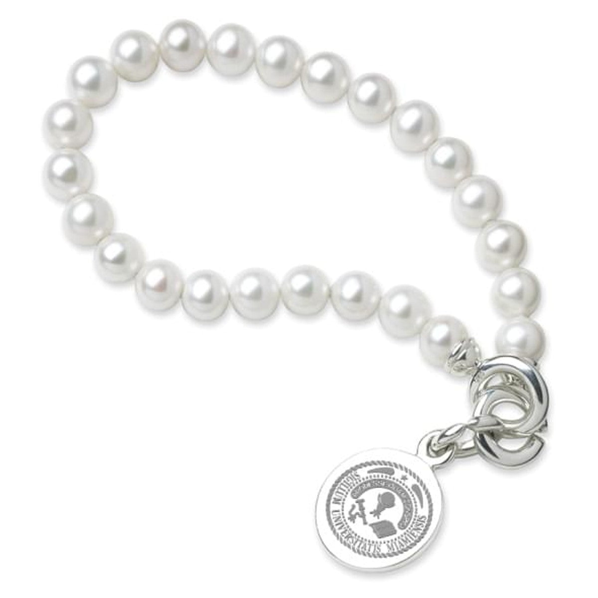 Miami University pearl bracelet and sterling silver Miami University charm features the Miami University seal delicately engraved on front and interlocking "C" clasp.
