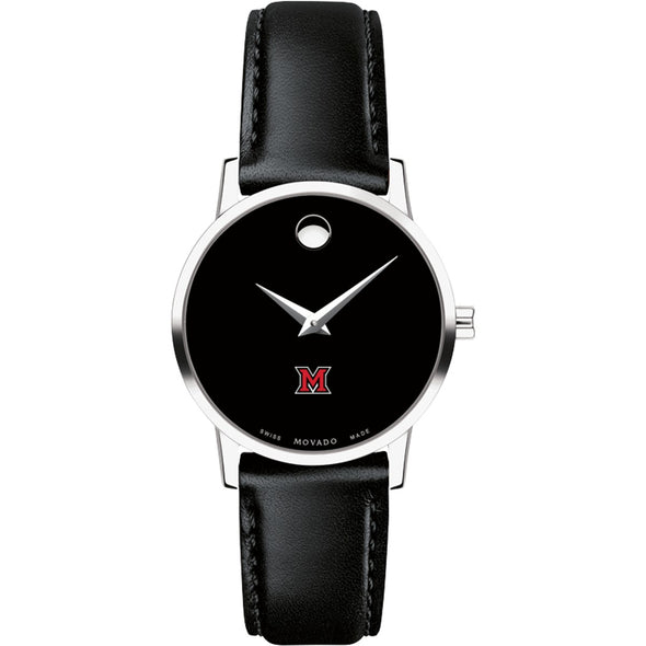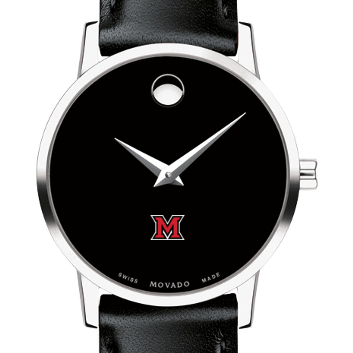 Miami University Women's Movado Museum watch features the Miami University Logo in full color at 6 o'clock on black dial. Created in 1947, the iconic concave dot symbolizes the sun at high-noon. Complimentary personal engraving.