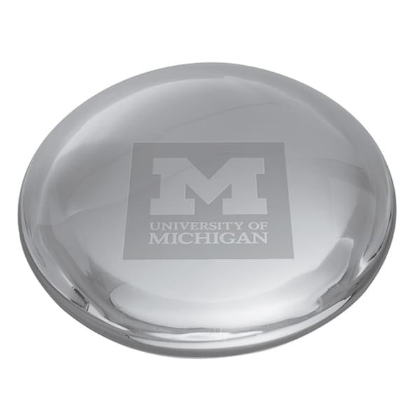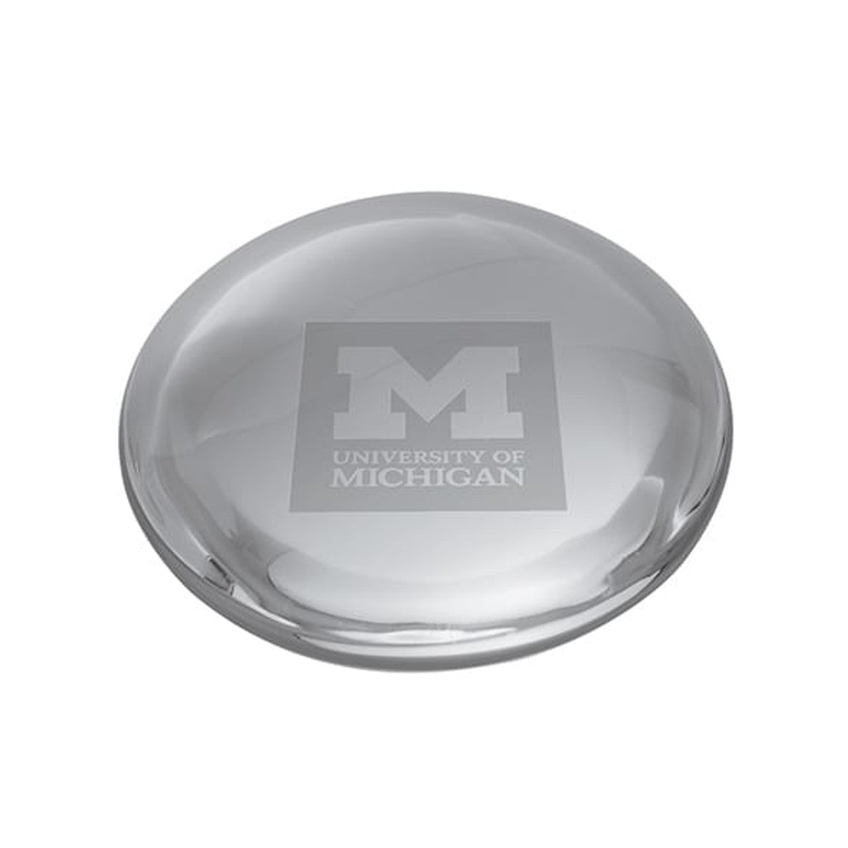 A proud display of Michigan pride for any office, the Michigan Logo is prominently etched on this hand-crafted glass paperweight.