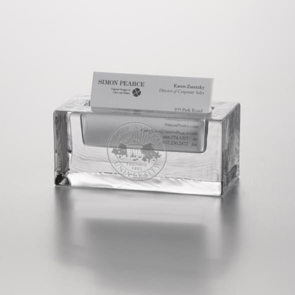 The Michigan State University Glass Business Cardholder is a functional adornment to any working environment. Formed from only the finest clear glass, the Michigan State Logo is distinctly etched on the front.