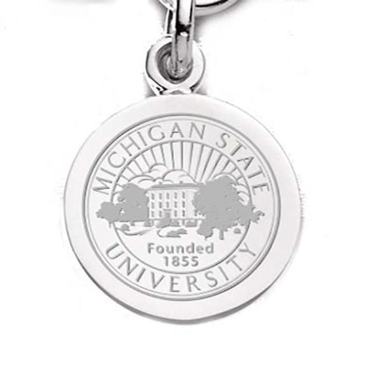 Michigan State University sterling silver, finely detailed charm features MSU seal on front.
