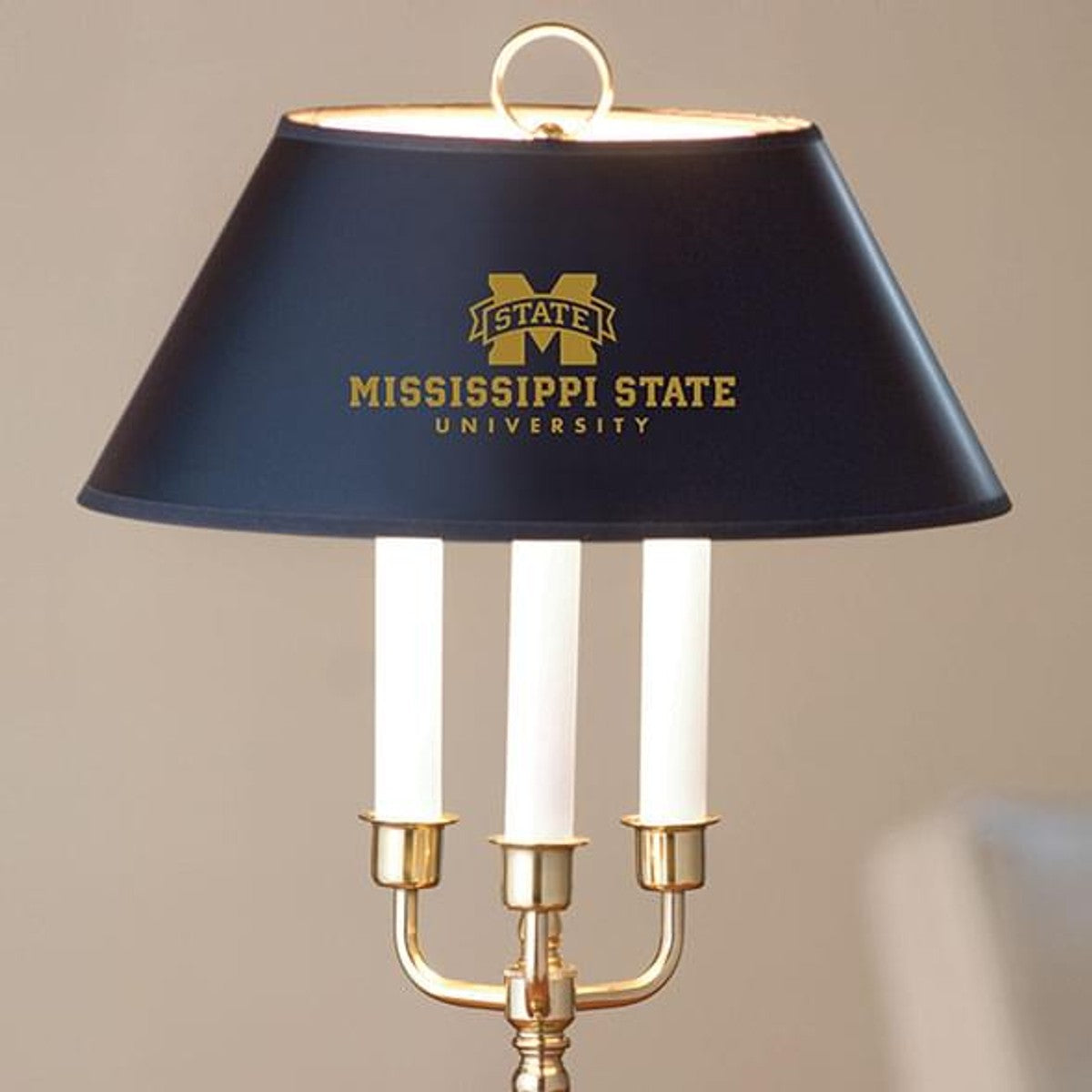 - MS State Logo in gold on the black parchment shade