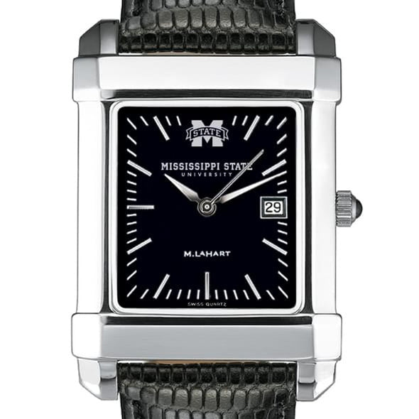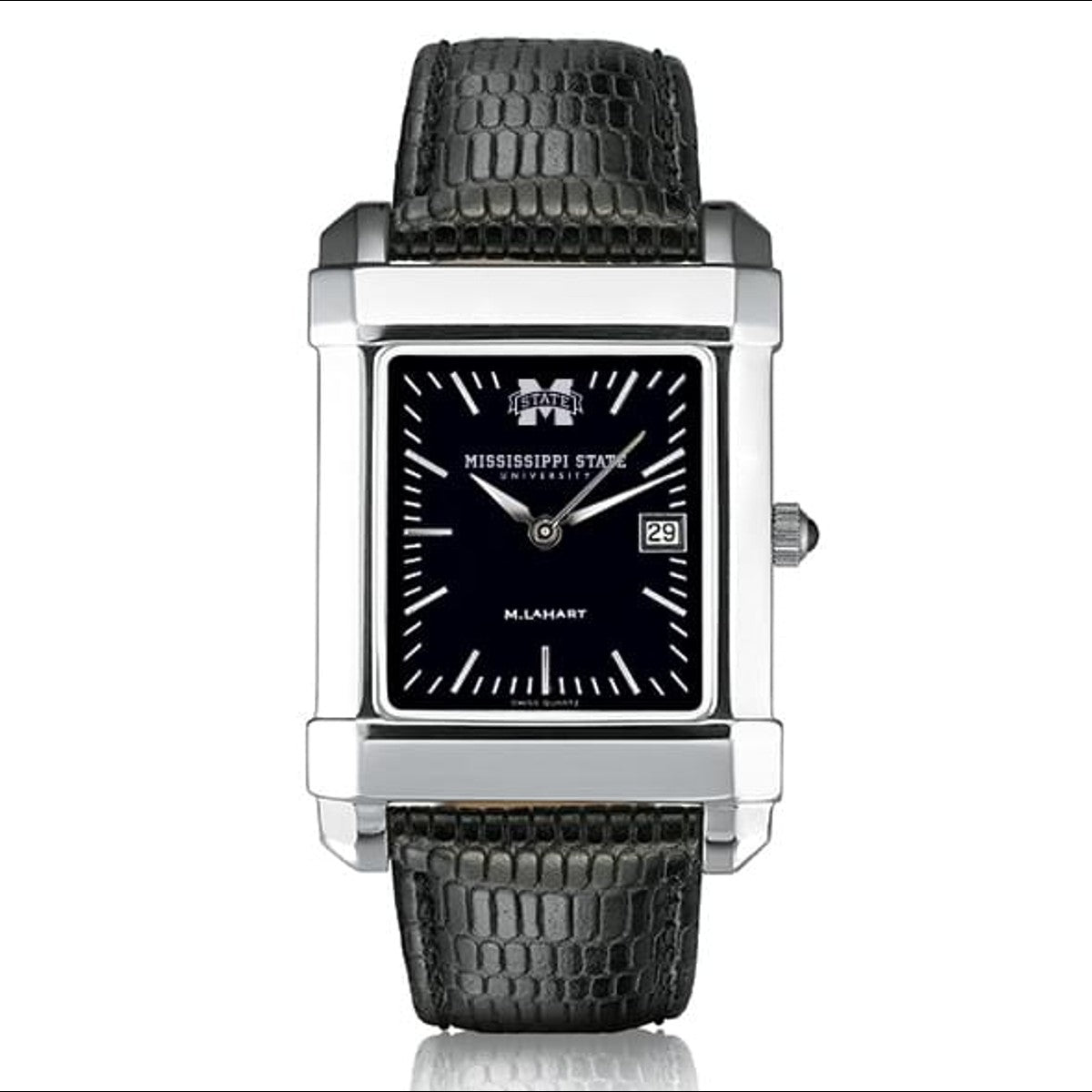 Mississippi State men's steel watch featuring MSU logo at 12 o'clock and "Mississippi State University" inscribed below on the black dial.