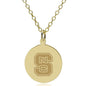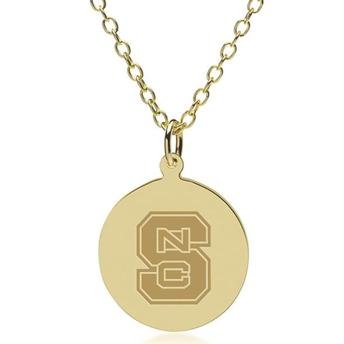 This solid 18-karat gold pendant and chain is an instant heirloom, featuring the NC State Logo beautifully engraved on the front with room for personalization on the back.