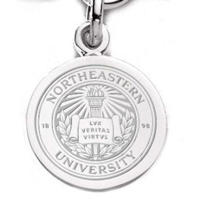 Delicate sterling silver locket holds two special photos close to heart. Engraved with Northeastern Logo.