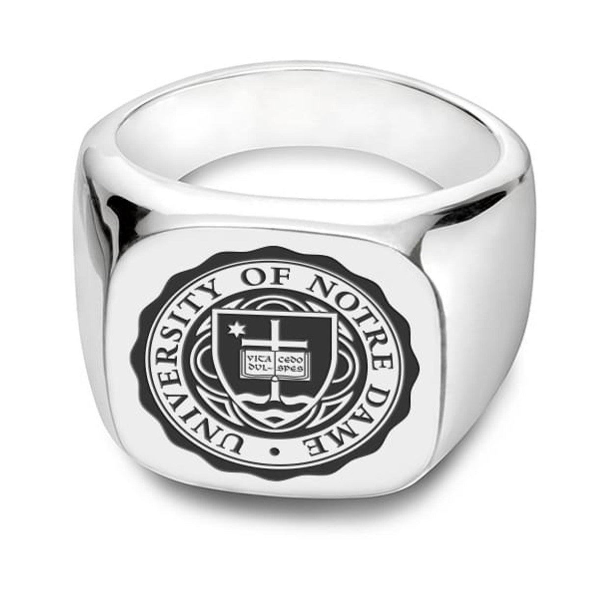 The University of Notre Dame Signet Ring features a bold square shape; a fine piece of sterling silver jewelry to be treasured for generations.