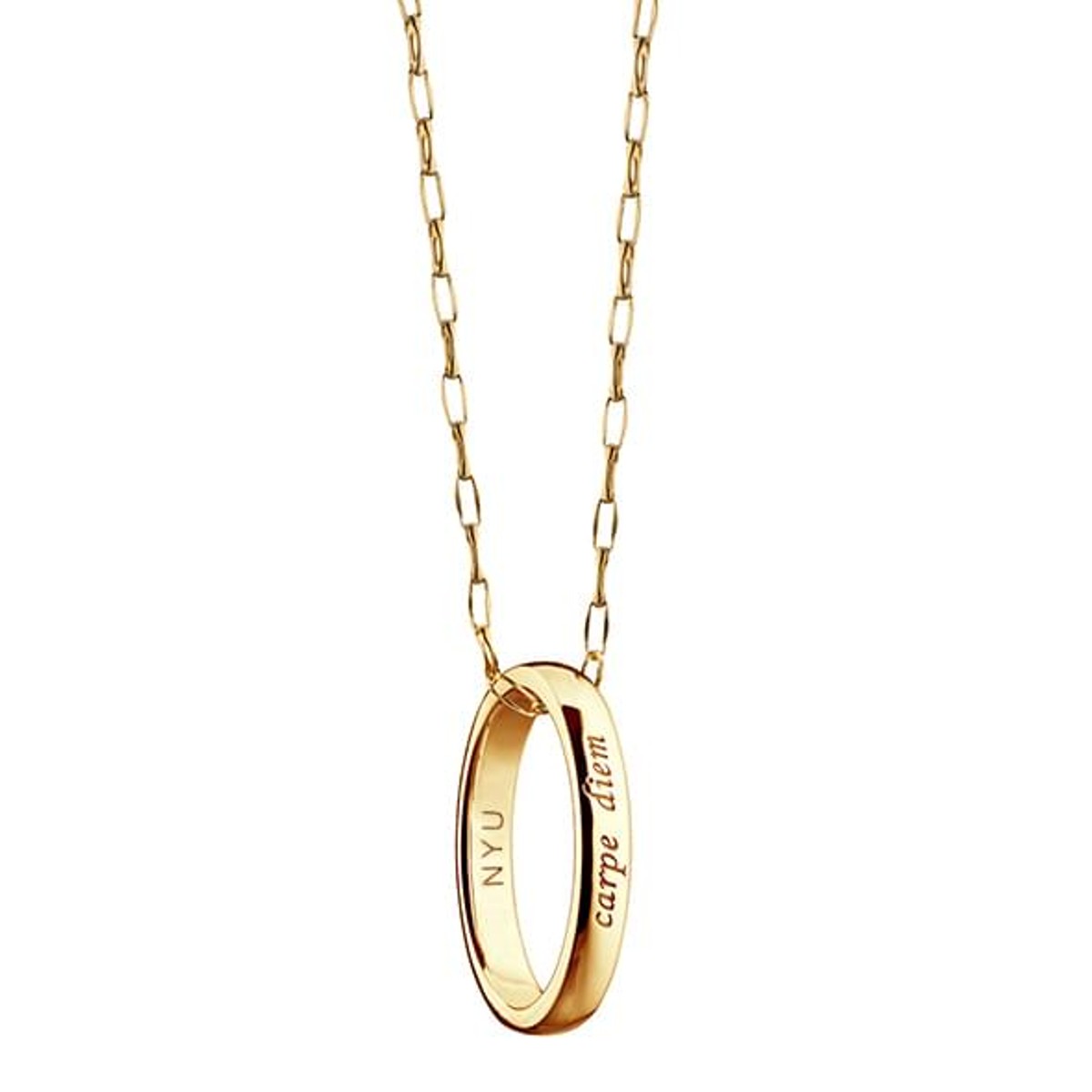 For centuries, poesy rings have carried special messages, delicately engraved. Now available with "NYU" inside the 18K gold ring and spirited "Carpe Diem" inscribed on the outside.