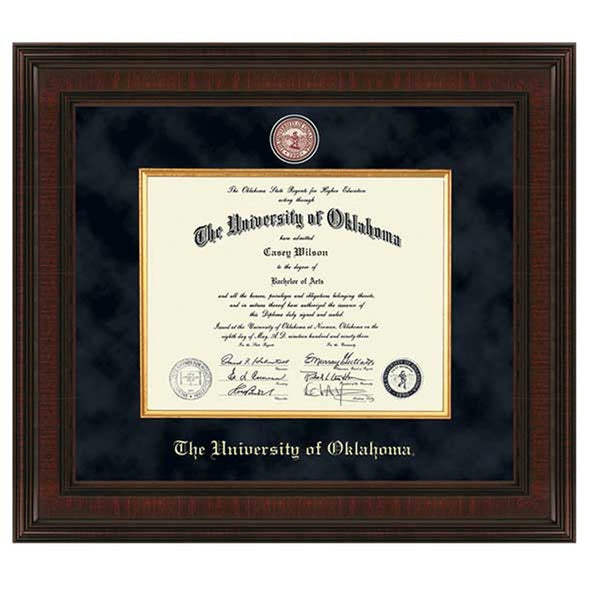 This Oklahoma Ph.D. diploma frame is specifically made to showcase and preserve your Oklahoma Diploma. Made from solid wood in the USA to meet stringent Library of Congress standards for archival document preservation.
