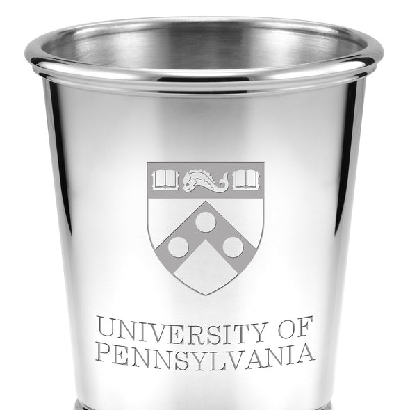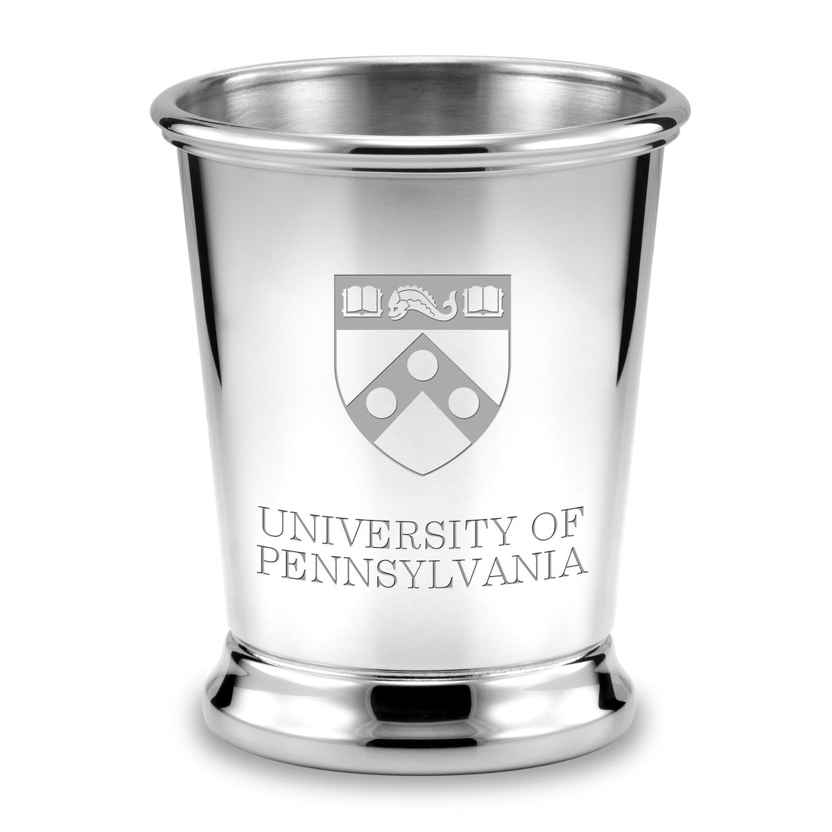 University of Pennsylvania pewter julep cup, intricately engraved with "University of Pennsylvania" and shield, makes a fine desk accessory. A stylish container for pens and pencils.