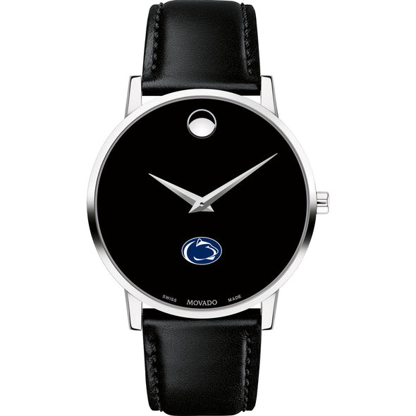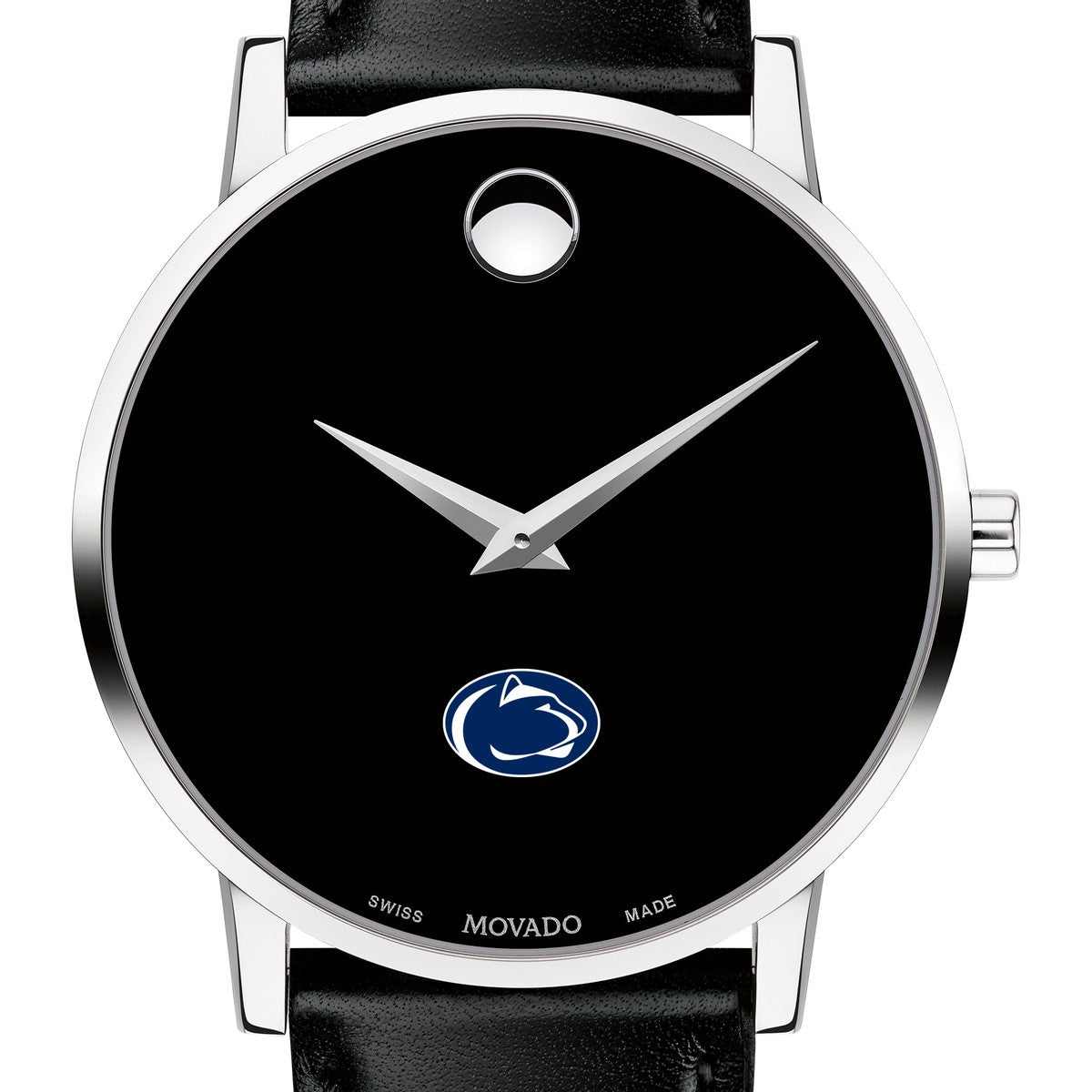 Penn State University Men's Movado Museum watch features the Penn State Logo in full color at 6 o'clock on black dial. Created in 1947, the iconic concave dot symbolizes the sun at high-noon. Complimentary personal engraving.
