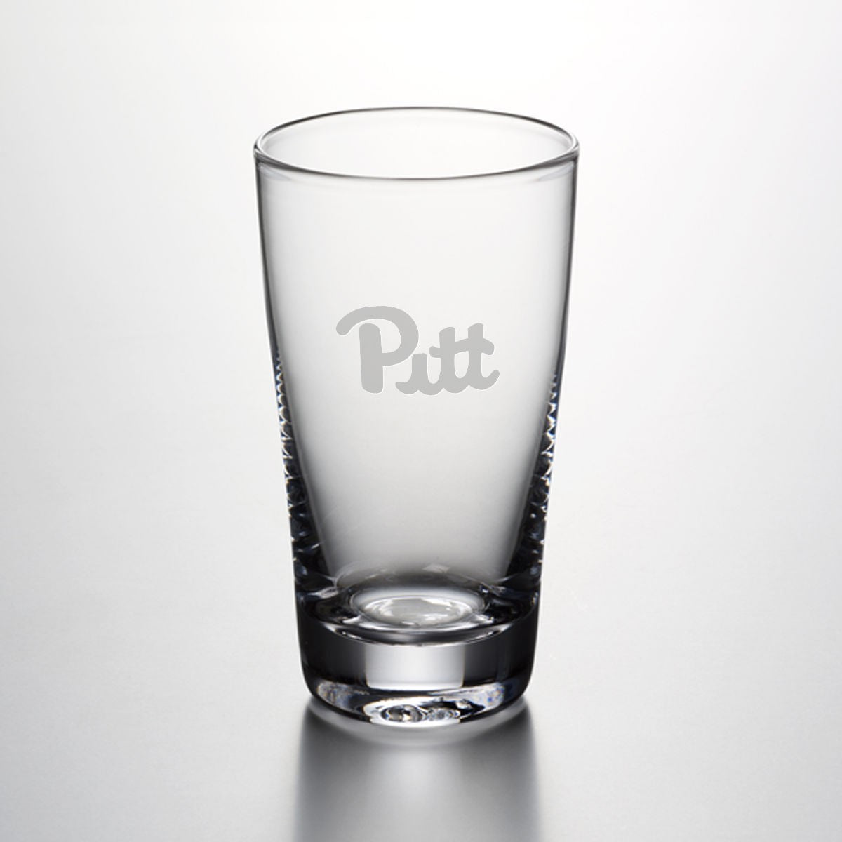 Pitt Pint Glass features the Pitt Logo handsomely engraved on the hand-blown glass. From its narrowly flared lip to its sleek, cylindrical body and sturdy, solid base, this pint glass is a classic.