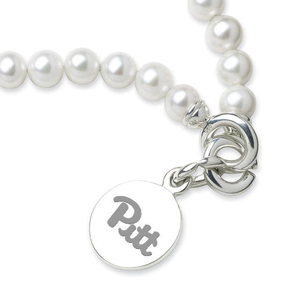 Pitt pearl bracelet and sterling silver Pitt charm features the Pitt seal delicately engraved on front and interlocking "C" clasp.