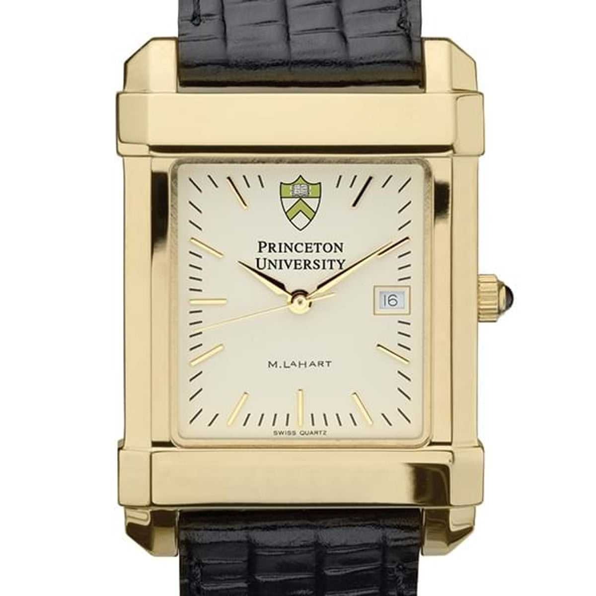 Princeton University men's gold watch featuring the Princeton Logo on cream dial. Free Engraving on all watches.