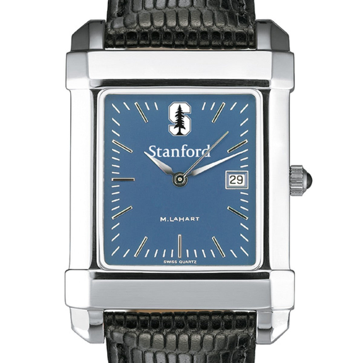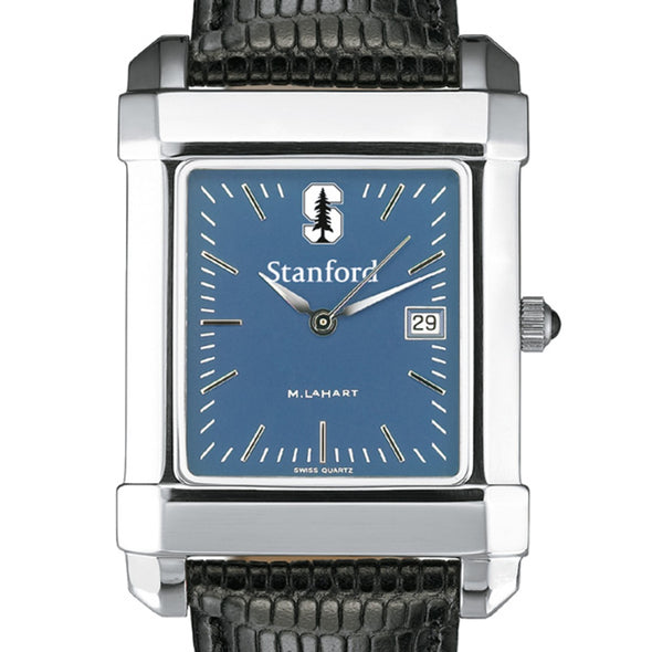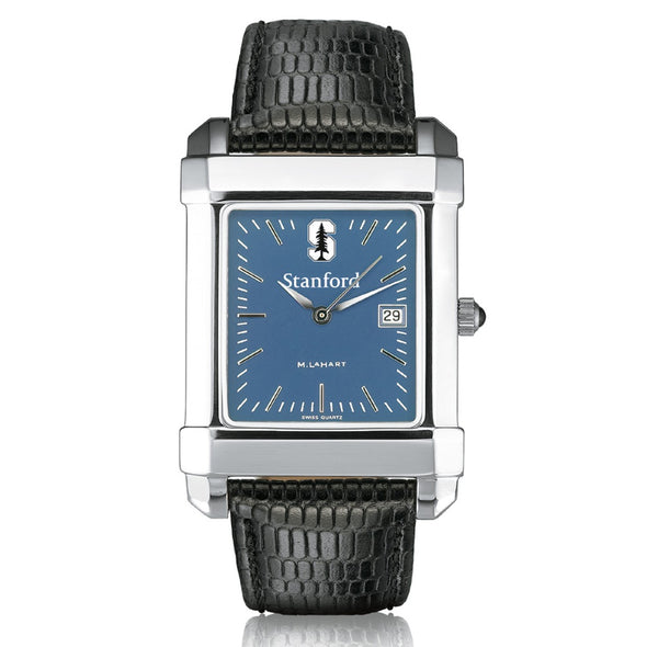 Stanford University men's steel watch featuring Stanford logo at 12 o'clock and "Stanford University" inscribed below on blue dial.