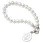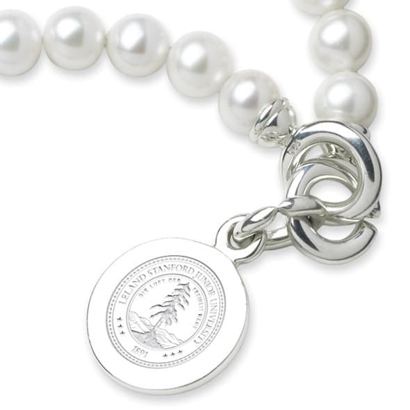Stanford University pearl bracelet and sterling silver Stanford charm features Stanford seal delicately engraved on front and interlocking "C" clasp.