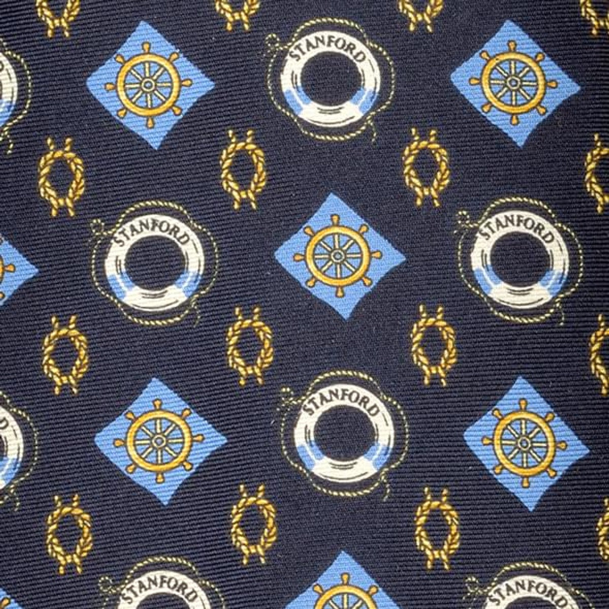 Stanford silk tie features the Stanford name on a fun nautical pattern. This tie is perfect for student, fans and Stanford alumni alike.