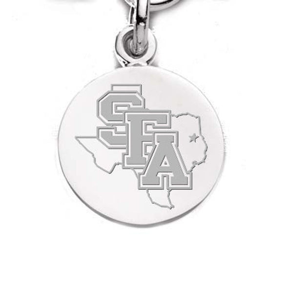 Stephen F. Austin State University sterling silver, finely detailed charm features SFASU logo on front.