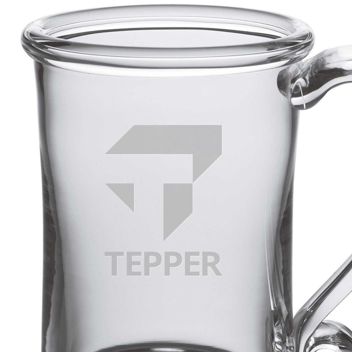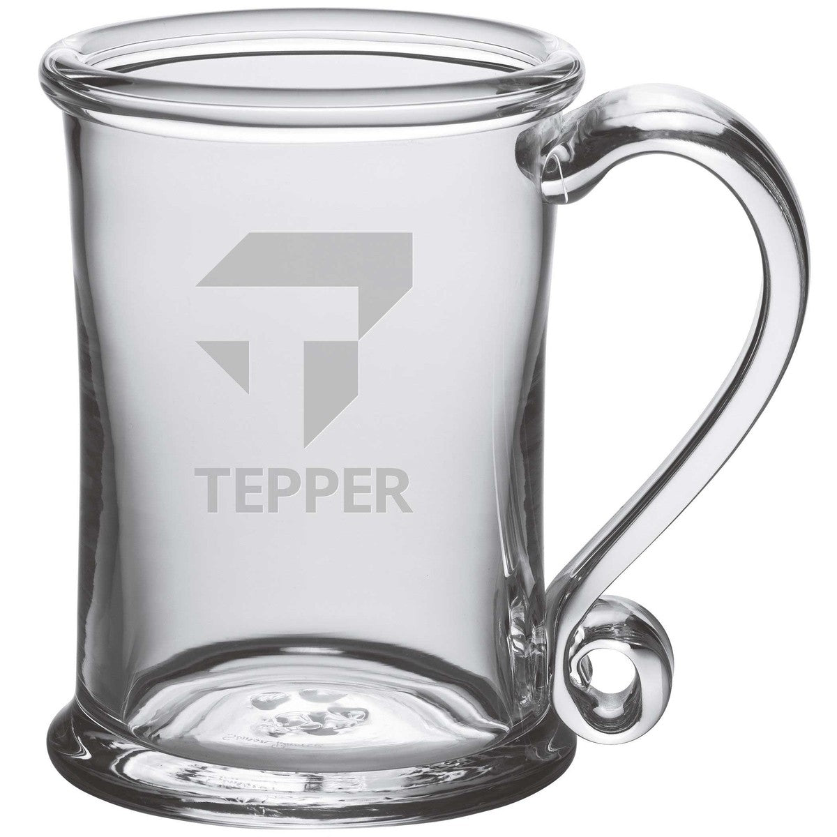 The Tepper Glass Tankard is an ideal choice if you're looking for a versatile glass. The enchantingly curved glass handle will help ensure that you don't spill a drop. The Glass Tankard has the Tepper logo handsomely etched on the hand-blown glass.