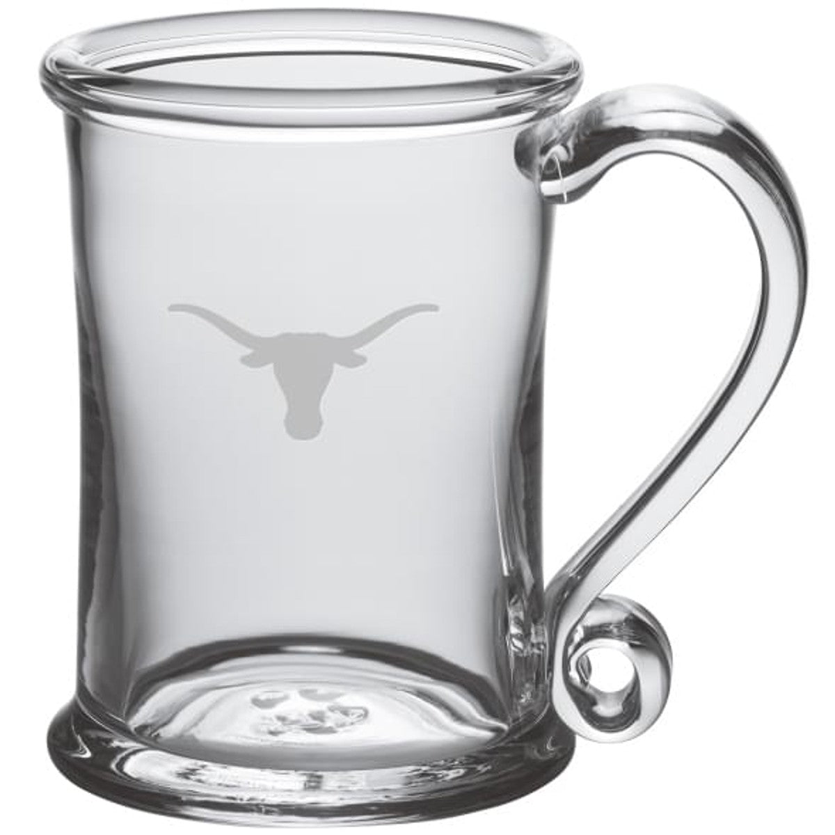 The UT Austin Glass Tankard is an ideal choice if you're looking for a versatile glass. The enchantingly curved glass handle will help ensure that you don't spill a drop. The Glass Tankard has the Texas Logo handsomely etched on the hand-blown glass.