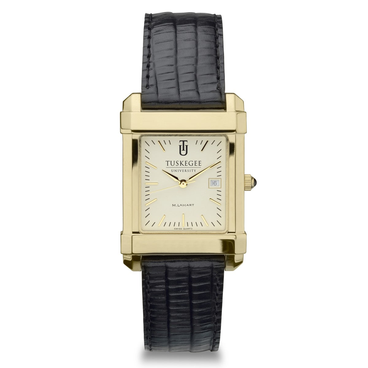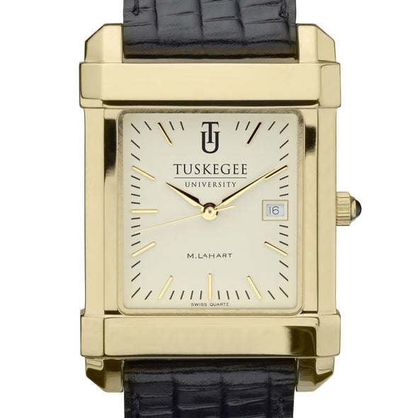 Tuskegee University men's gold watch featuring the Tuskegee Logo on cream dial. Free Engraving on all watches.