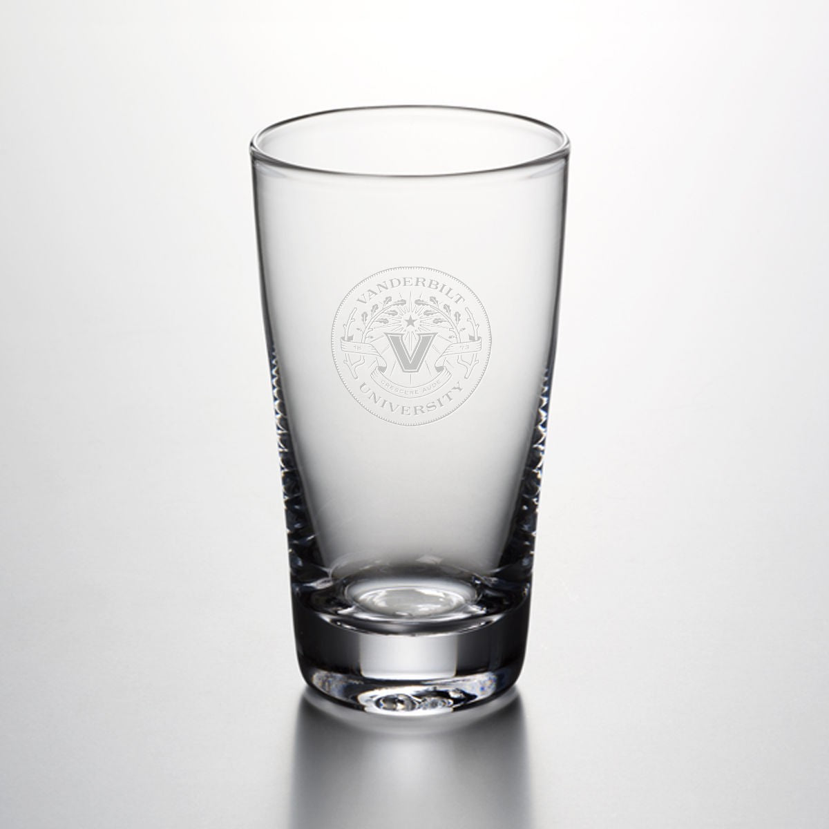 Vanderbilt Pint Glass features the Vanderbilt Logo handsomely engraved on the hand-blown glass. From its narrowly flared lip to its sleek, cylindrical body and sturdy, solid base, this pint glass is a classic.