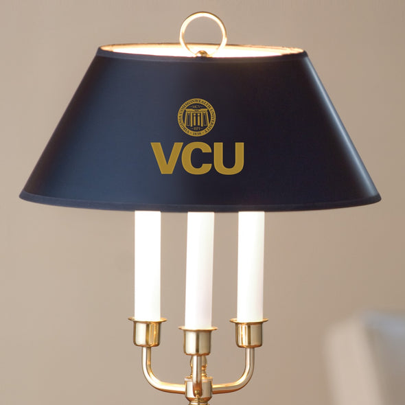 Exemplary craftsmanship defines our traditional VCU lamp, highlighted with the VCU Logo on the black parchment shade. A timeless reminder of your VCU days. Free personalization with an engraved brass plate included for easy at-home attachment.