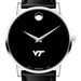 Virginia Tech Men's Movado Museum watch features the Virginia Tech Logo in full color at 6 o'clock on black dial. Created in 1947, the iconic concave dot symbolizes the sun at high-noon. Complimentary personal engraving.