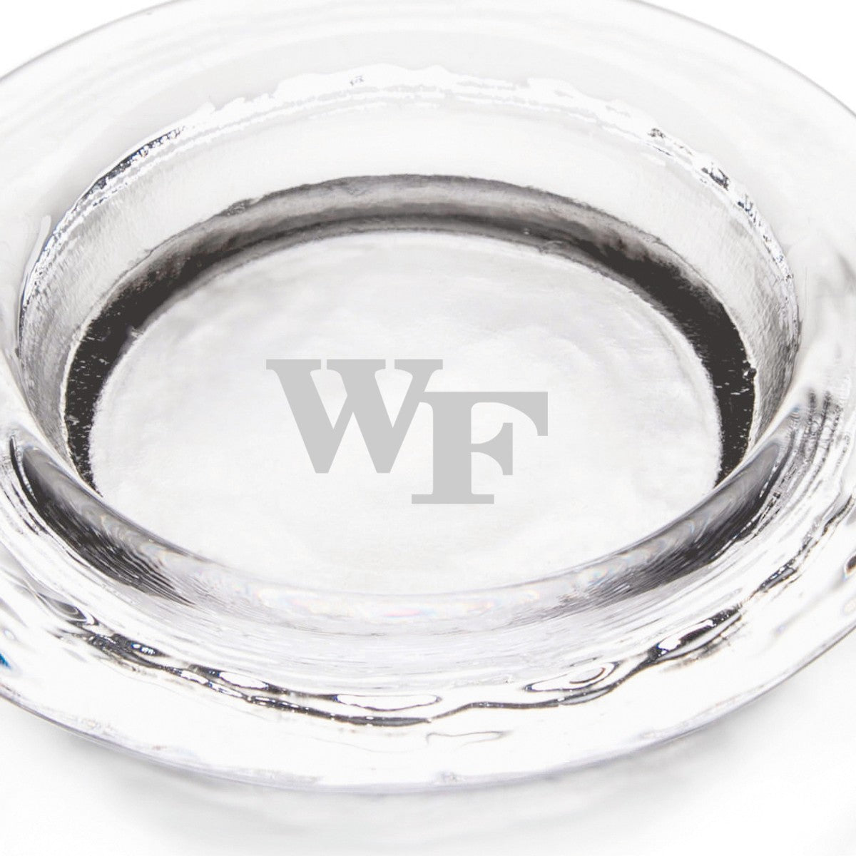 The Wake Forest University Glass Wine Coaster, with the Wake Forest Logo distinctly etched on the base, is handcrafted with a thick, round lip and ample opening to accommodate different bottle sizes. Not only is the wine coaster an elegant feature to any table, it will also protect your furniture's finish.