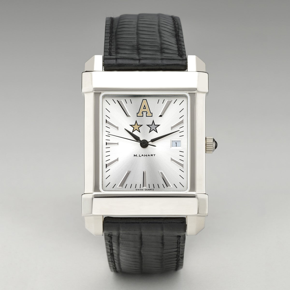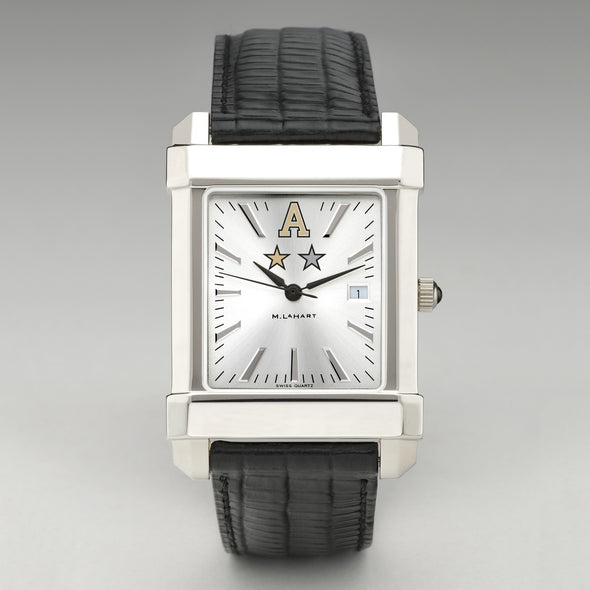 Memorialize your victories over Navy and Air Force with this exclusive, honorary Army West Point Letterwinner's Watch from M.LaHart. This varsity letterwinner's steel watch with leather strap features the gold Army "A" at high noon to mark your athletic achievement, and is decorated with a gold and silver star to celebrate your wins for the ages over both Navy and Air Force.