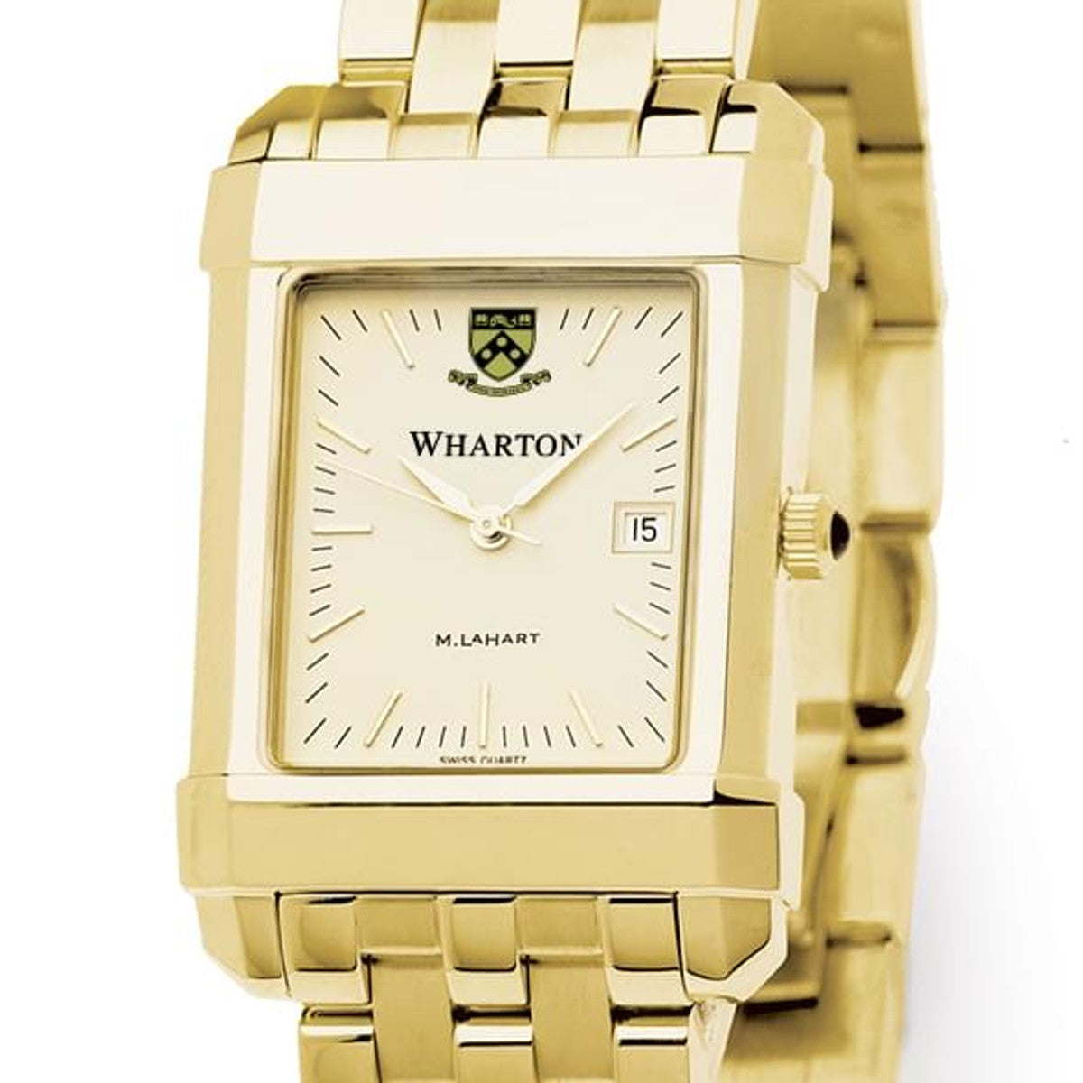 Wharton men's gold watch featuring the Wharton Logo on cream dial. Free Engraving on all watches.