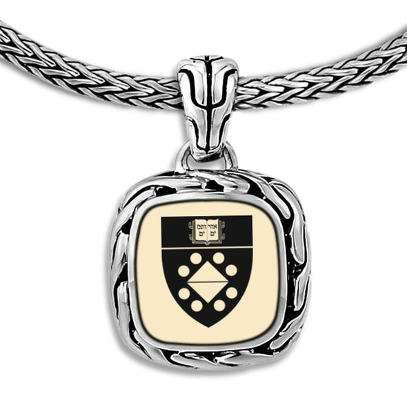 The sterling charm features an 18-karat gold center, intricately engraved with the Yale SOM Logo. The necklace is handwoven from beautiful sterling silver strands, giving each piece authentic contours, movement and feel – and quintessential John Hardy style.